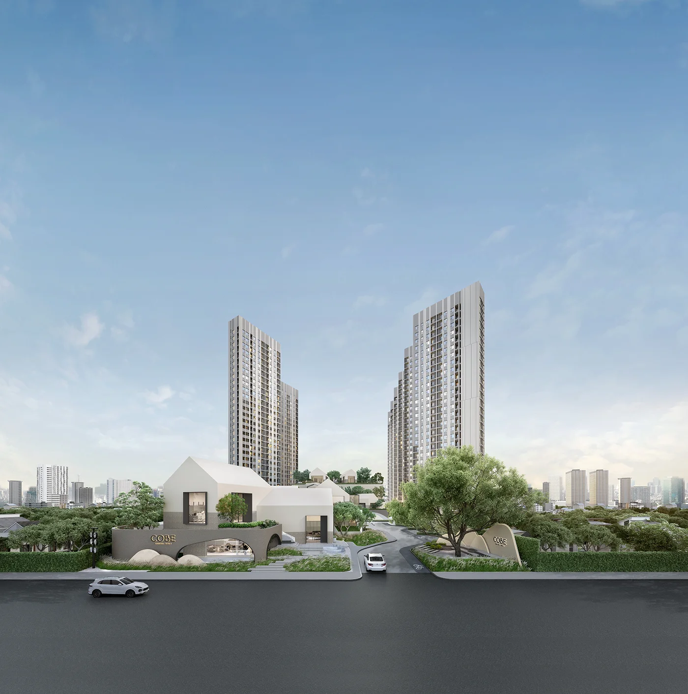COBE Ratchada-Rama9 is a high-rise condominium complex in Bangkok's Ratchada-Rama9 area designed for young urban professionals. Built on the concept of "Co-Being Community," the development spans 12 rai with nine 27-29 story buildings containing 1,612 units.